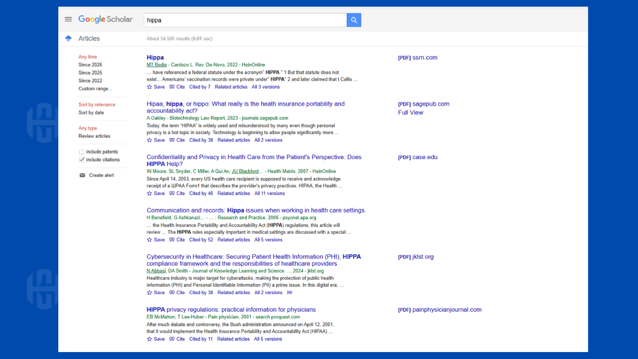 I recently searched Google Scholar for “HIPPA” — the misspelling — and found over 34,500 results. These aren’t random blog posts or social media rants. These are peer-reviewed academic papers, law review articles, and published research studies. Journals like the Biotechnology Law Report, Health Matrix, Pain Physician, and even the Journal of Knowledge Learning and Science have all published articles with “HIPPA” right in the title. One APA-published article in Research and Practice even referred to “the Health Insurance Portability and Accountability Act (HIPPA)” — spelling the acronym wrong while writing the full name correctly in the same sentence. That’s over thirty thousand academic publications where nobody caught the error before it went to print.